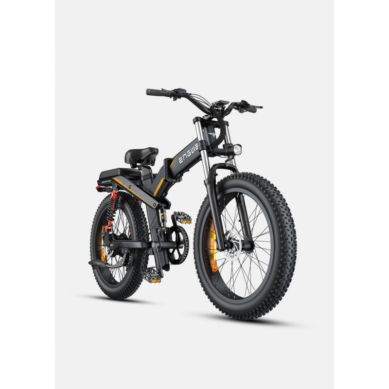 Doté d’un cadre en alliage d’aluminium 6061 et de pneus larges 24 x 4.0, le ENGWE X20 allie solidité et confort. La suspension multiple absorbe efficacement les chocs tandis que les freins à disque hydrauliques garantissent un freinage précis et sécurisant dans toutes les conditions. Avec sa transmission Shimano à 8 vitesses, vous adaptez facilement votre conduite en fonction du terrain.