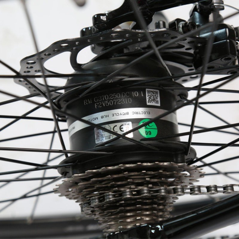Équipé d’un moteur BAFANG rear mini hub 36V/250W, ce vélo offre une assistance naturelle et efficace sur les pentes modérées. Sa batterie lithium 36V/7,8Ah, intégrée dans le cadre, peut être rechargée directement sur le vélo ou retirée pour une charge à domicile. L’autonomie moyenne atteint 40 km ou plus, selon les conditions et le mode d’utilisation.