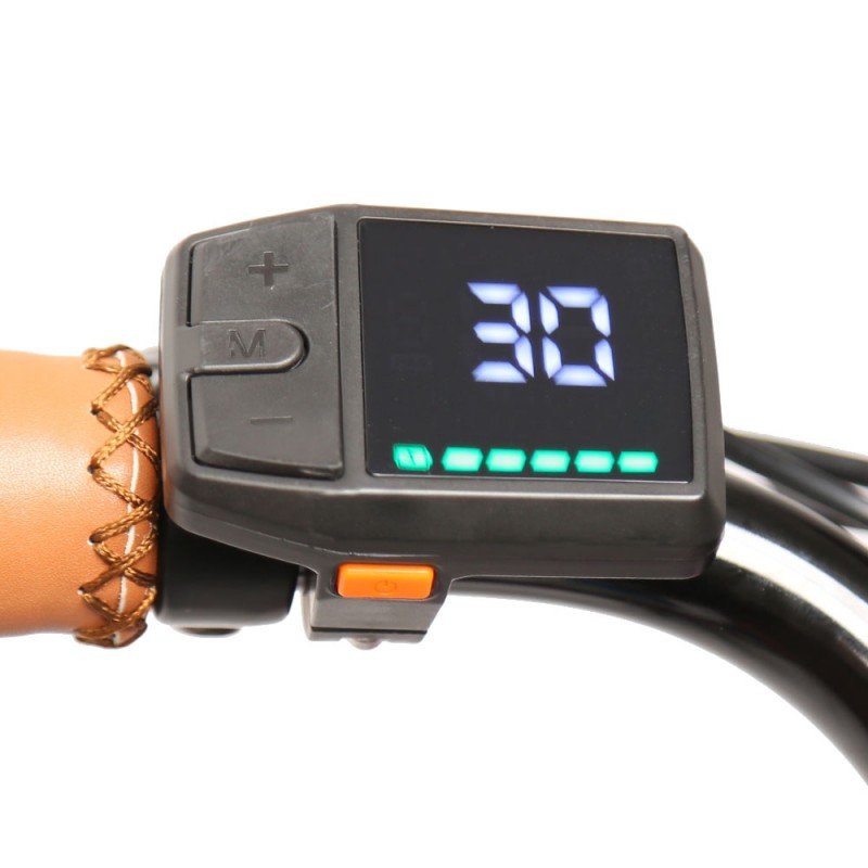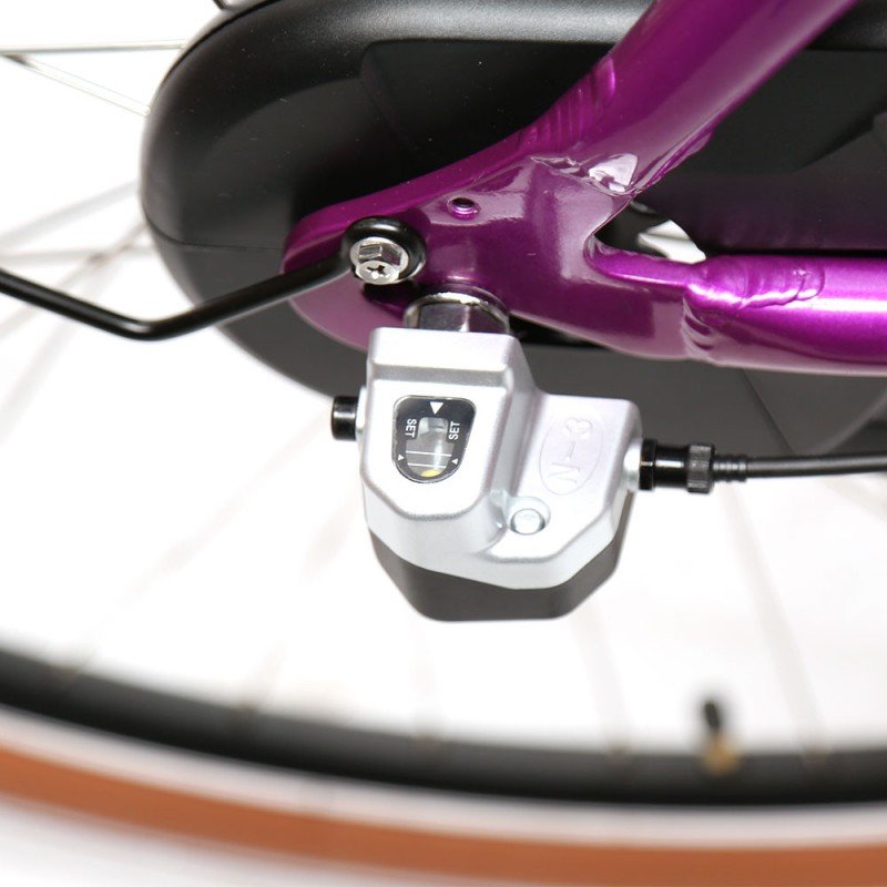 Doté d’un moteur avant brushless 36V/250W, ce vélo fournit une assistance fluide et naturelle, idéale pour les trajets en ville et le transport de petites charges. La batterie Lithium 36V/10,4Ah permet une autonomie moyenne de 40 km par charge, avec une vitesse maximale de 25 km/h conformément à la norme européenne EN 15194:2017. Le mini écran couleur LCD affiche les informations essentielles : niveau de batterie, vitesse, distance parcourue et 5 niveaux d’assistance.